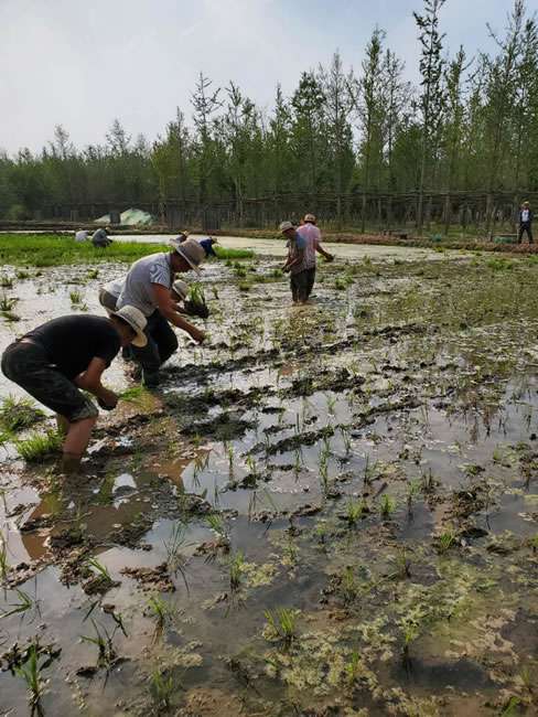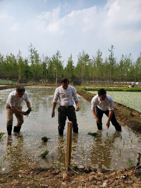 日前,云顶集团最新网站董事长梁雨、总裁谢俊率集团高级管理人员来到位于北京西四环外的锦绣大地生态园,在景色迷人的玉泉山山下,同志们挽起裤脚跃进田里,生态园农业技术员一边弓腰示范,一边讲解道“插秧是个技术活,将秧苗窝在虎口处,既要轻又要稳,用巧劲儿将秧苗抛在泥里,不能抛得太深,又要确保植保灌溉时,秧苗不漂浮在水面上。”